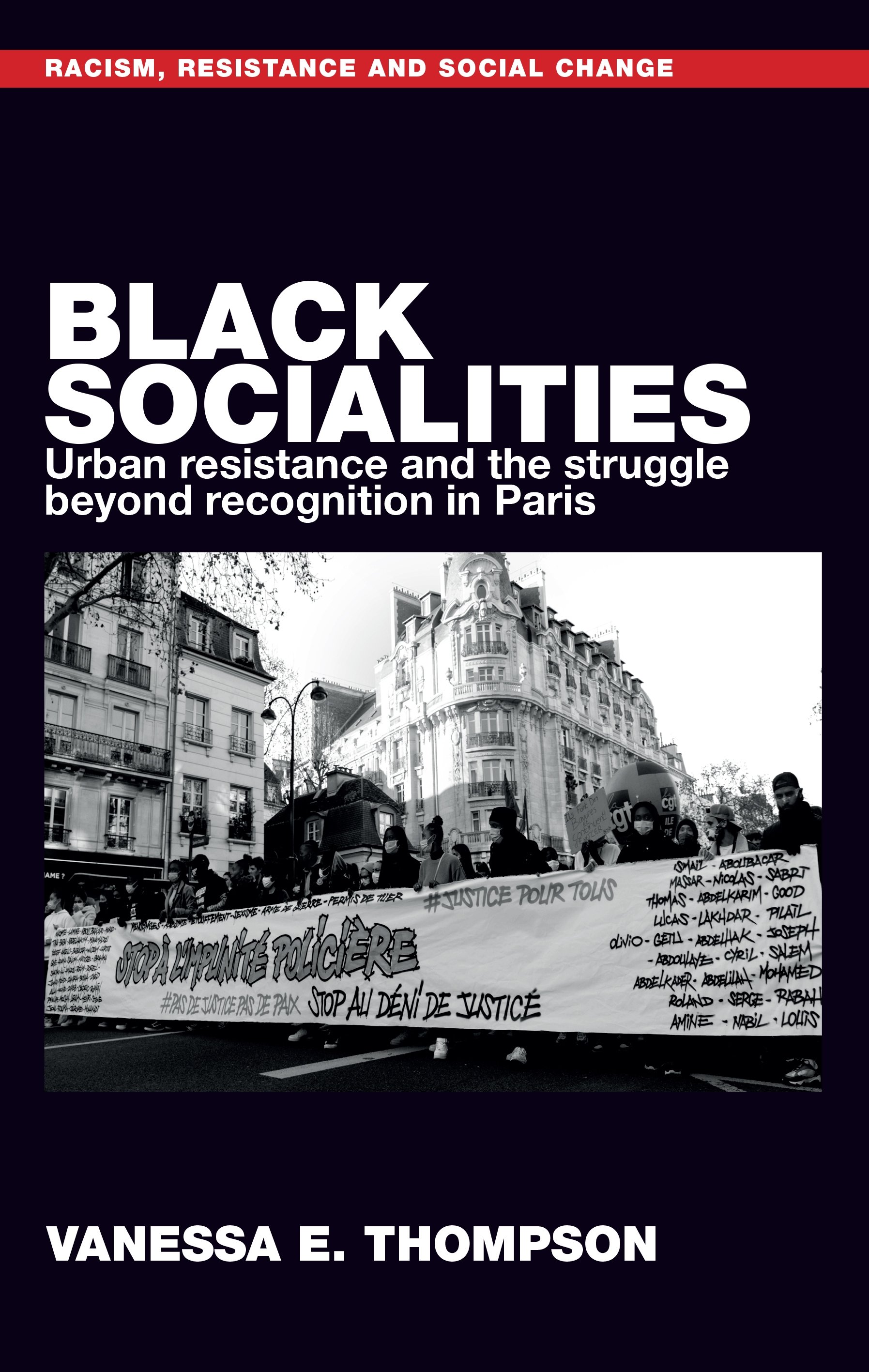 In Black Socialities: urban resistance and the struggle beyond recognition in Paris, Vanessa E. Thompson argues that black urban politics in the French banlieues are multi-racial and spatially grounded towards abolition. Based on a close engagement with urban black activist practices against racial imagery in the city, policing and state racism, and housing insecurity, she shows how radical anti-racism goes beyond struggles for recognition and unfolds alongside new formations of political blackness that is based on urban conviviality.